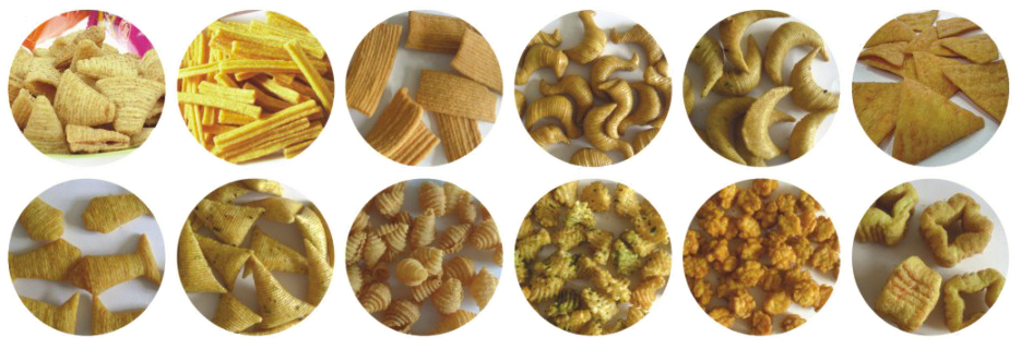 5.生產流程:原料混合→擠壓膨化→整(zhěng)形切斷→油炸→甩油→調味→包裝(設備(bèi)配(pèi)置靈活)